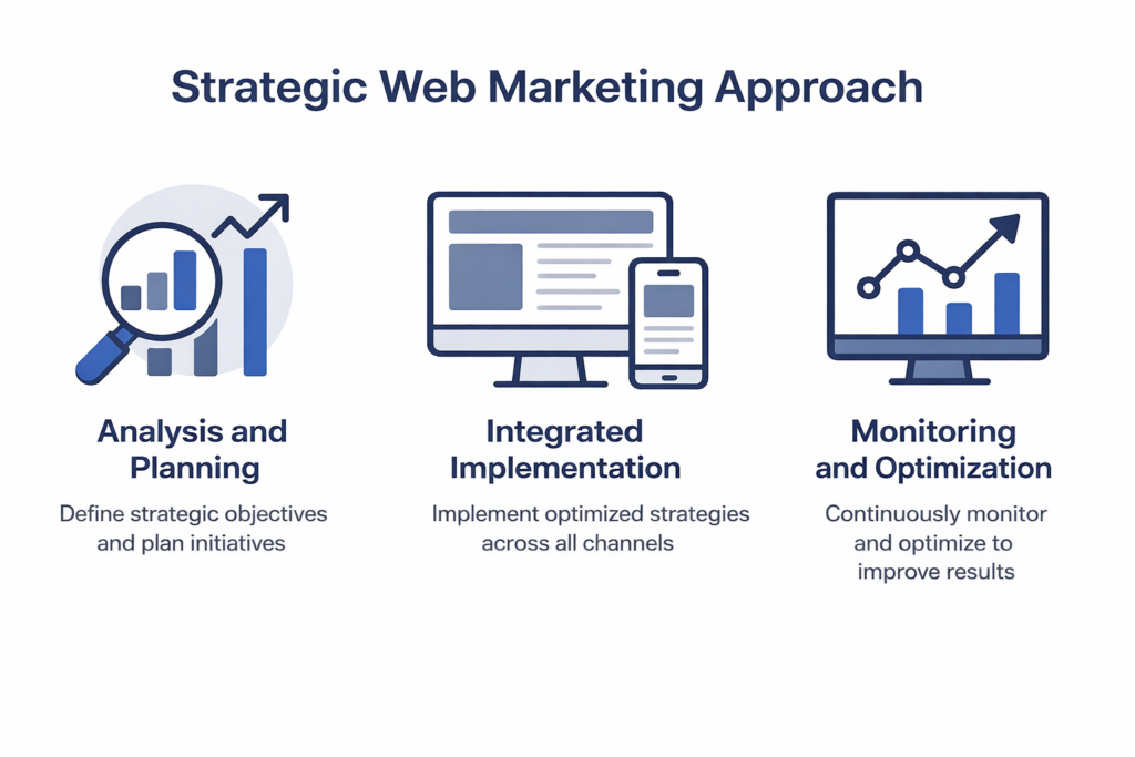 SEO, content marketing, social media, and data analysis. Every action is measured, every euro is tracked.